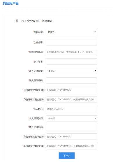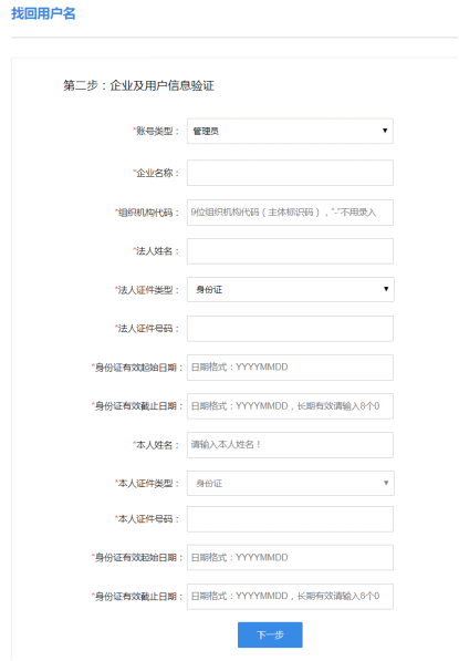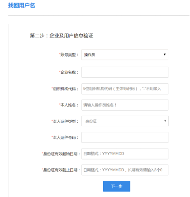 点击登录首页的”忘记用户名”,可选择自然人用户或法人用户